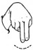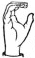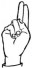 На ћирилици написано КРСТИМИР ДРОБЊАК састоји се из 15 слова [?]. Исписано ћириличном једноручном азбуком за глувонеме: